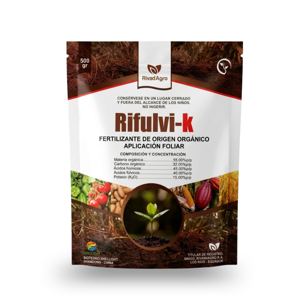 Rifulvi-K es un fertilizante de origen orgánico de alta asimilación, diseñado para aplicación foliar. Está formulado a partir de una matriz concentrada de ácidos húmicos y fúlvicos, con el objetivo de optimizar el transporte de nutrientes y mejorar la eficiencia fotosintética de la planta.